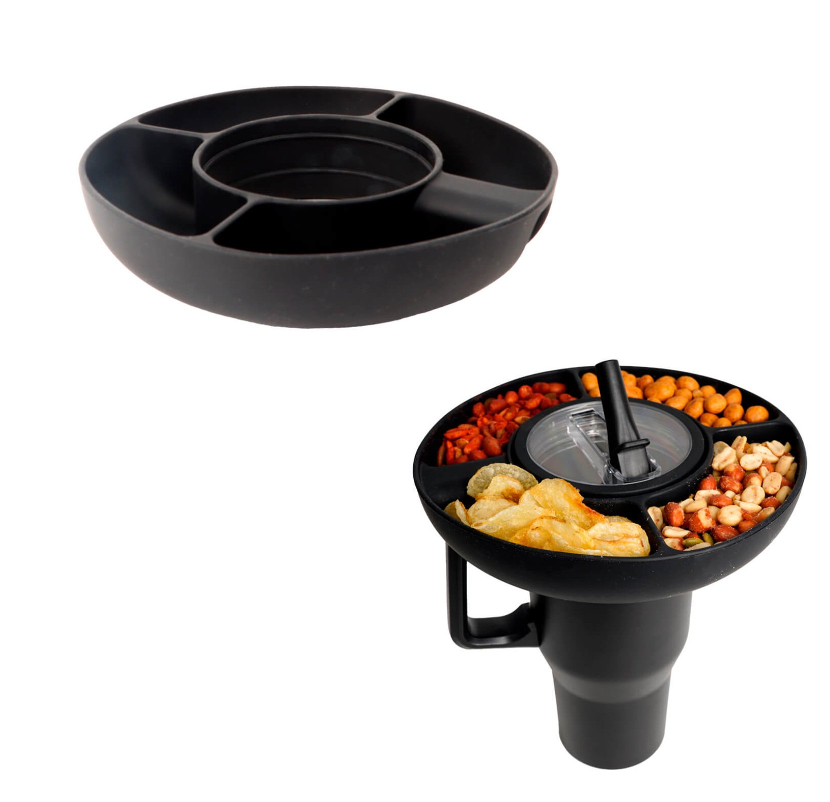 El tazón de botanas es una excelente opción para servir alimentos de manera organizada y práctica en reuniones o eventos. Su diseño incluye múltiples compartimentos que permiten separar distintos tipos de botanas, manteniendo su presentación y evitando mezclas.