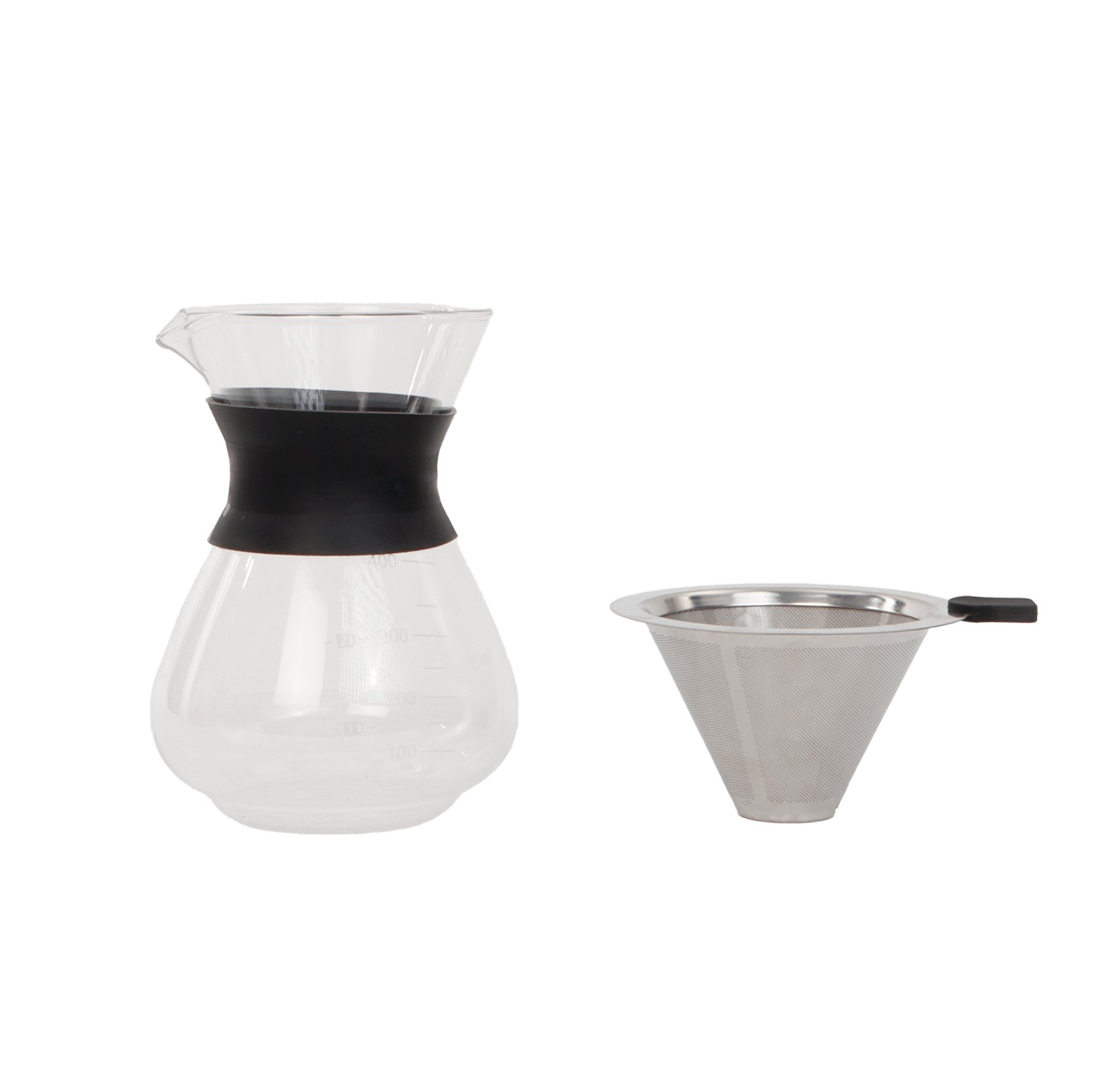 La cafetera de goteo es una excelente alternativa para quienes buscan preparar café de manera manual con mayor control sobre el proceso. Fabricada en vidrio resistente y equipada con un filtro cónico de acero inoxidable, permite una extracción uniforme que resalta el sabor y aroma del café.