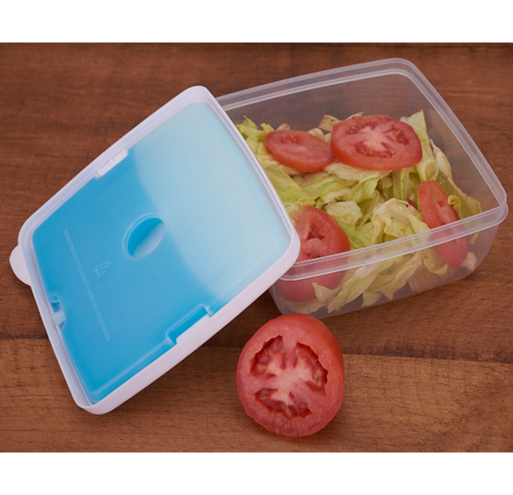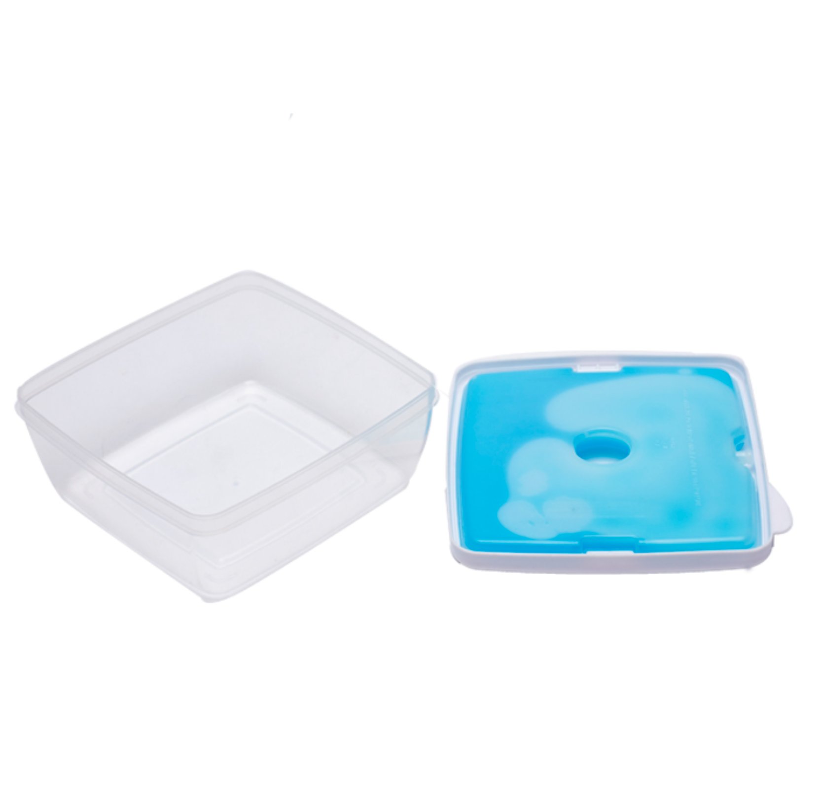 Novedoso recipiente de plástico con tapa especial que contiene una cubierta de gel, la cual se congela y permite conservar frescos los alimentos durante más tiempo. Lo más efectivo para prolongar la frescura. La cubierta de gel de la tapa se puede remover para un uso normal. CAP. 600 ml. *BPA FREE.