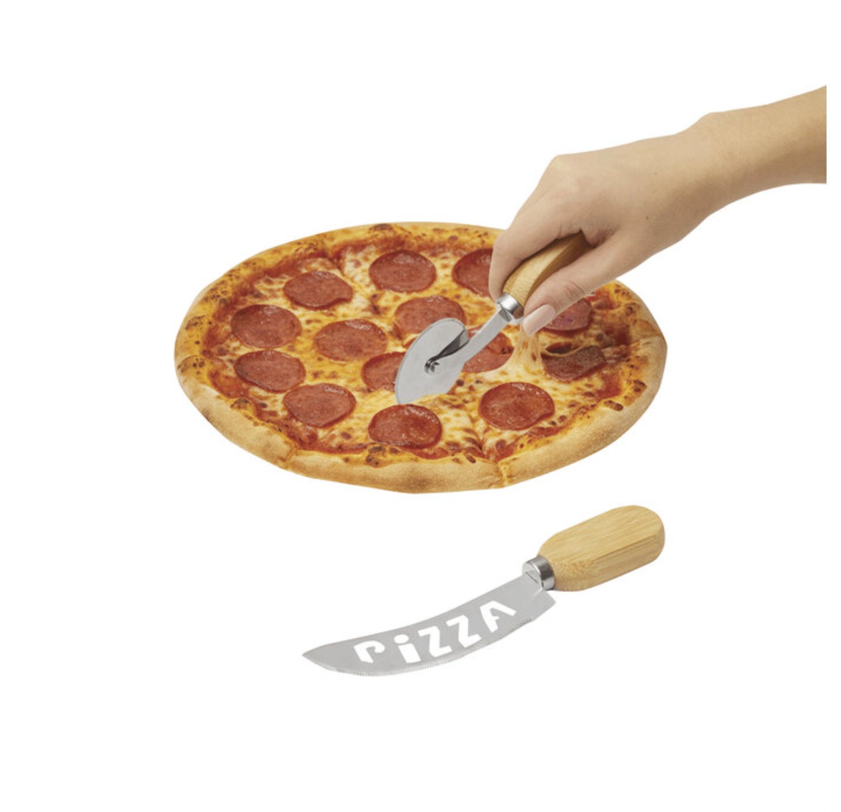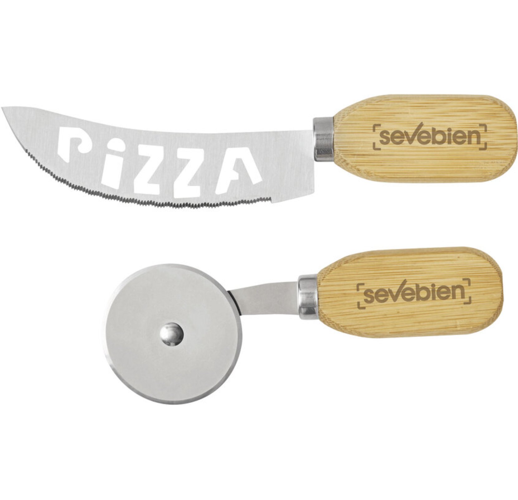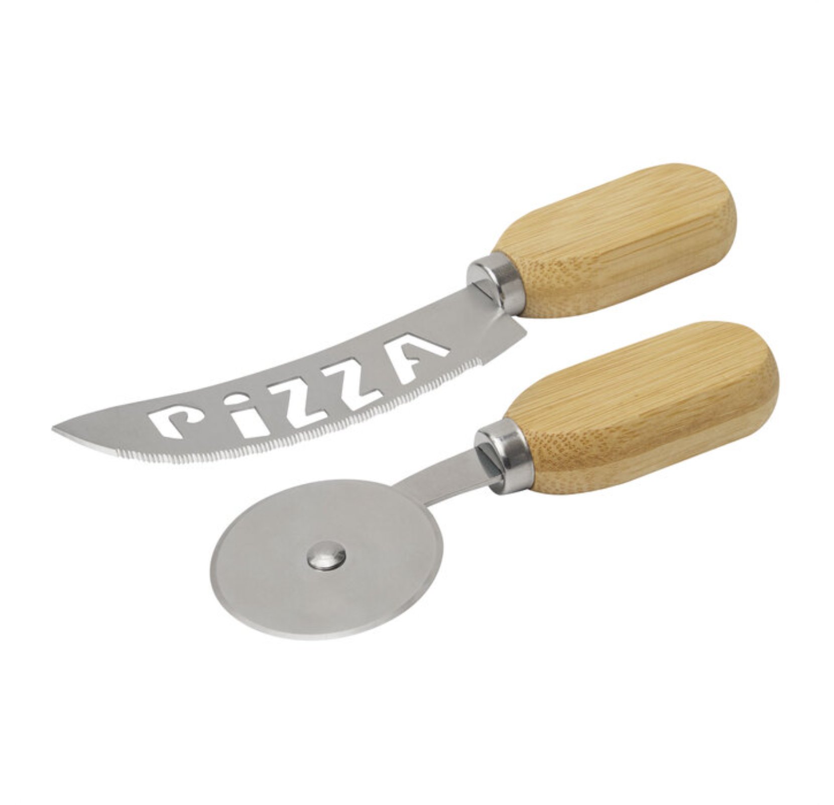 Fabricado con acero inoxidable 420, reconocido por su resistencia y durabilidad, y mangos de bambú que aportan un toque natural y elegante, este set garantiza un manejo seguro y cómodo. Incluye un cuchillo curvo con hoja dentada y perforada que permite realizar cortes firmes sin deformar los alimentos, así como una cuchilla circular giratoria que facilita cortes rápidos, uniformes y precisos.