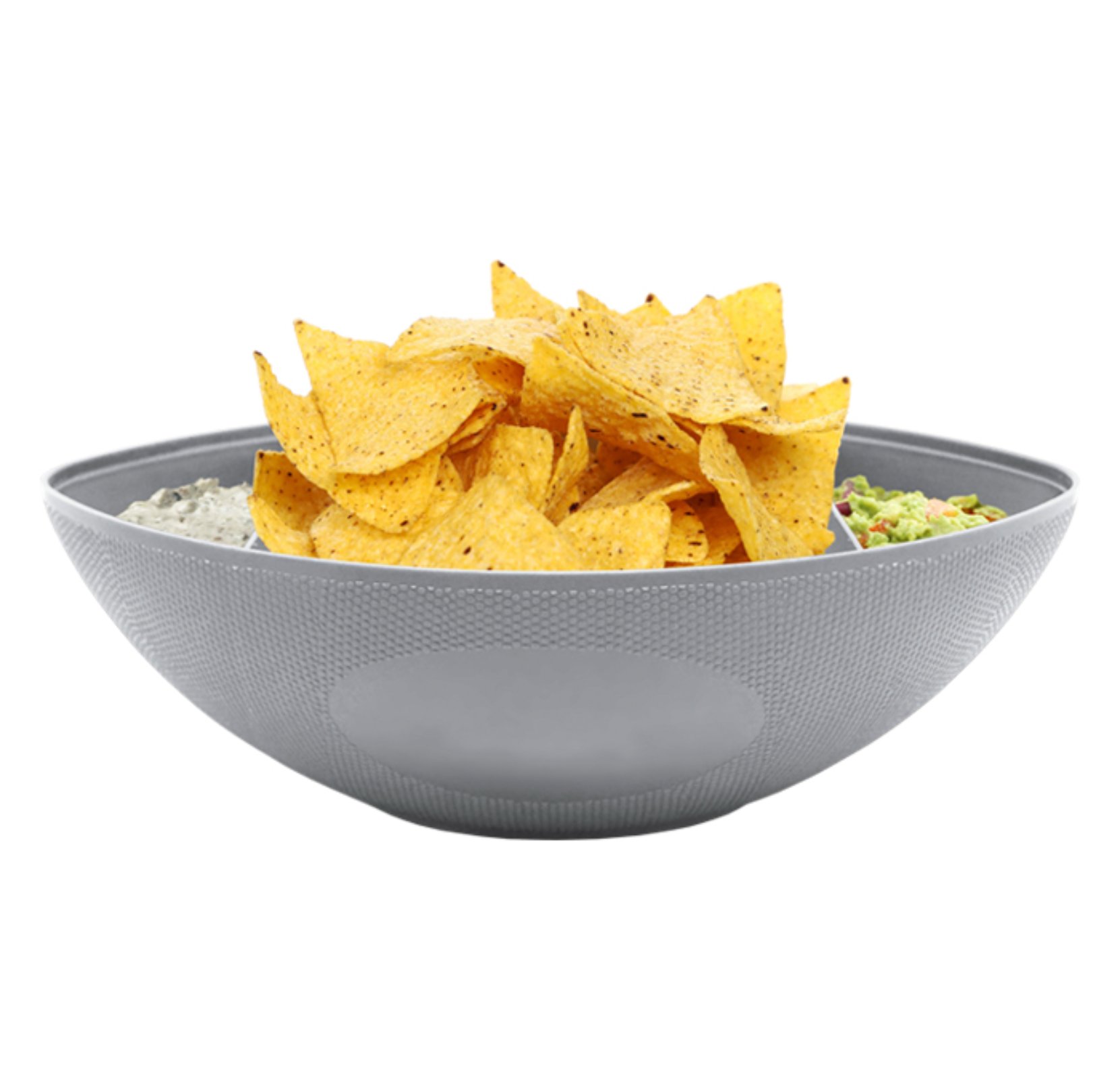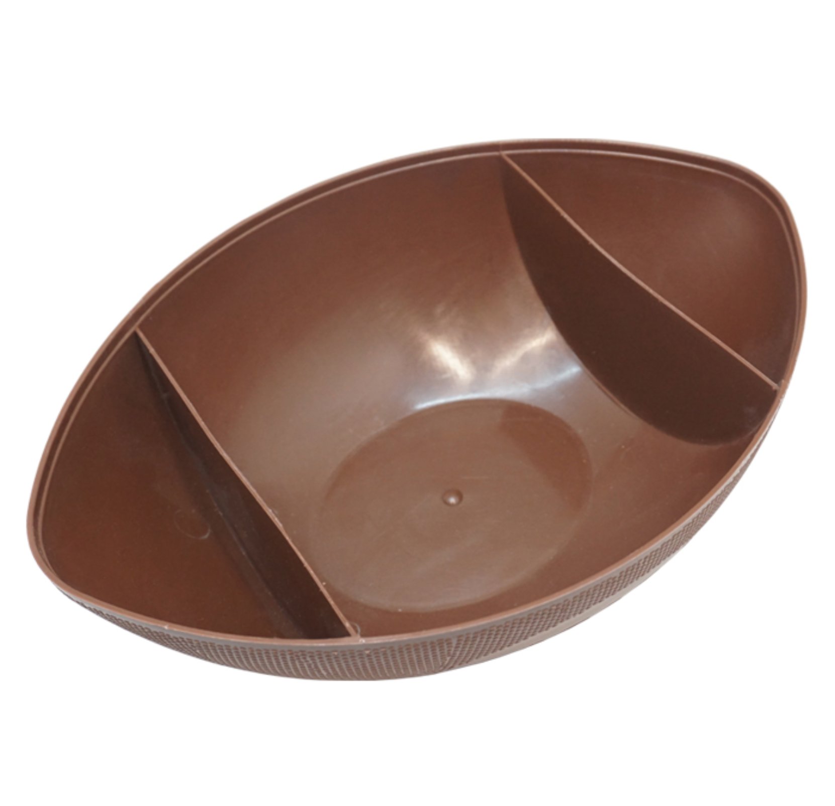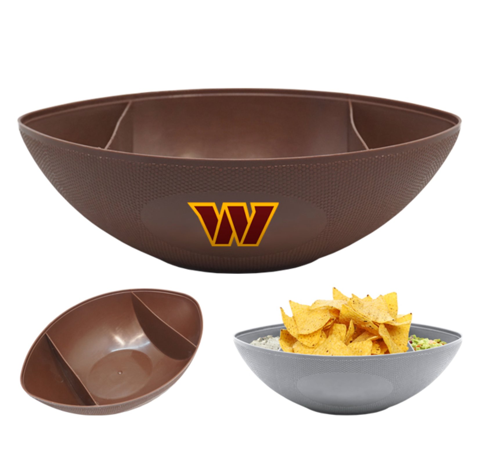 Plato botanero en forma de balón de fútbol americano, cuenta con 3 divisiones. Cap. 1,250 ml.
