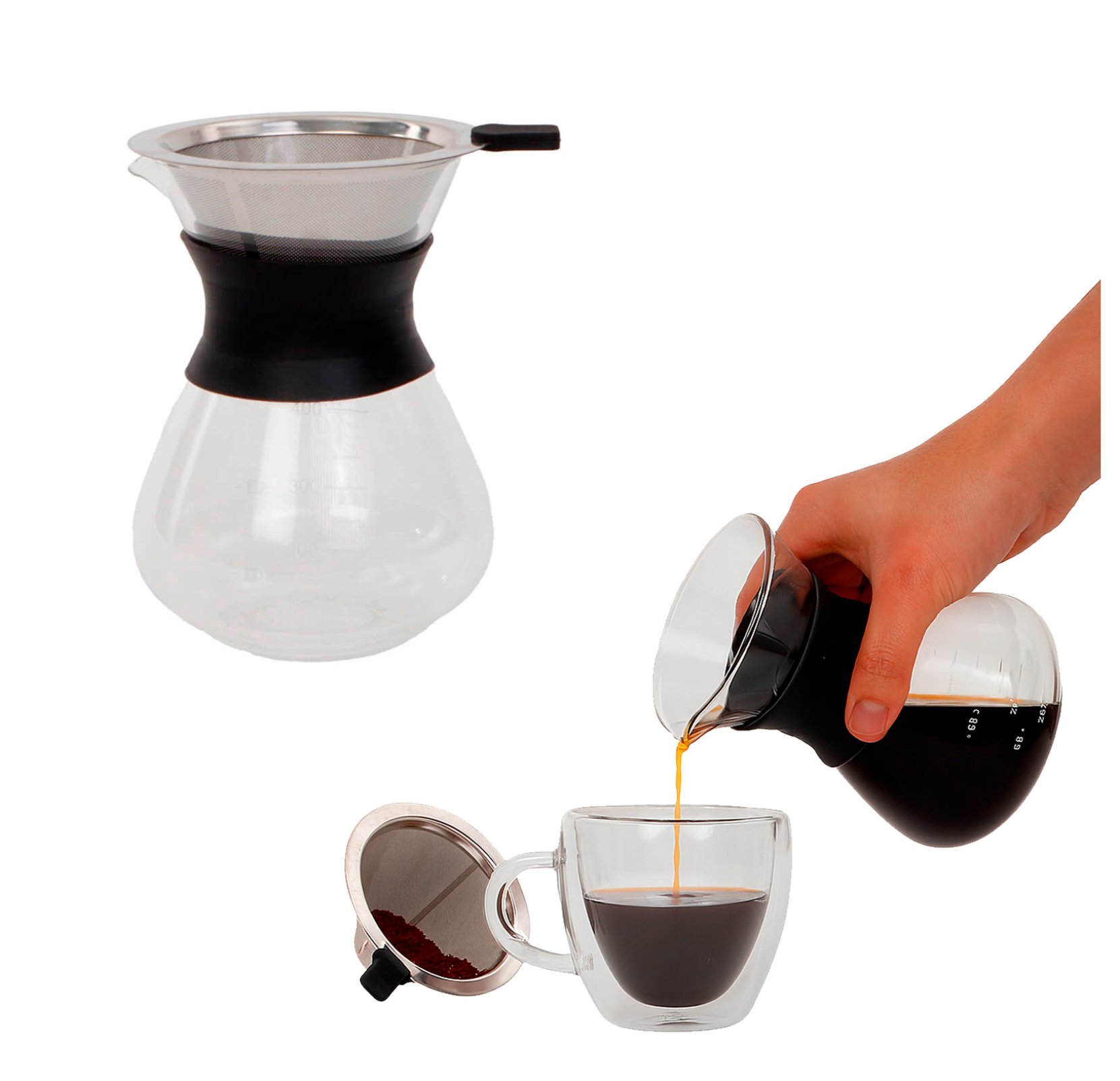 La cafetera de goteo es una excelente alternativa para quienes buscan preparar café de manera manual con mayor control sobre el proceso. Fabricada en vidrio resistente y equipada con un filtro cónico de acero inoxidable, permite una extracción uniforme que resalta el sabor y aroma del café.