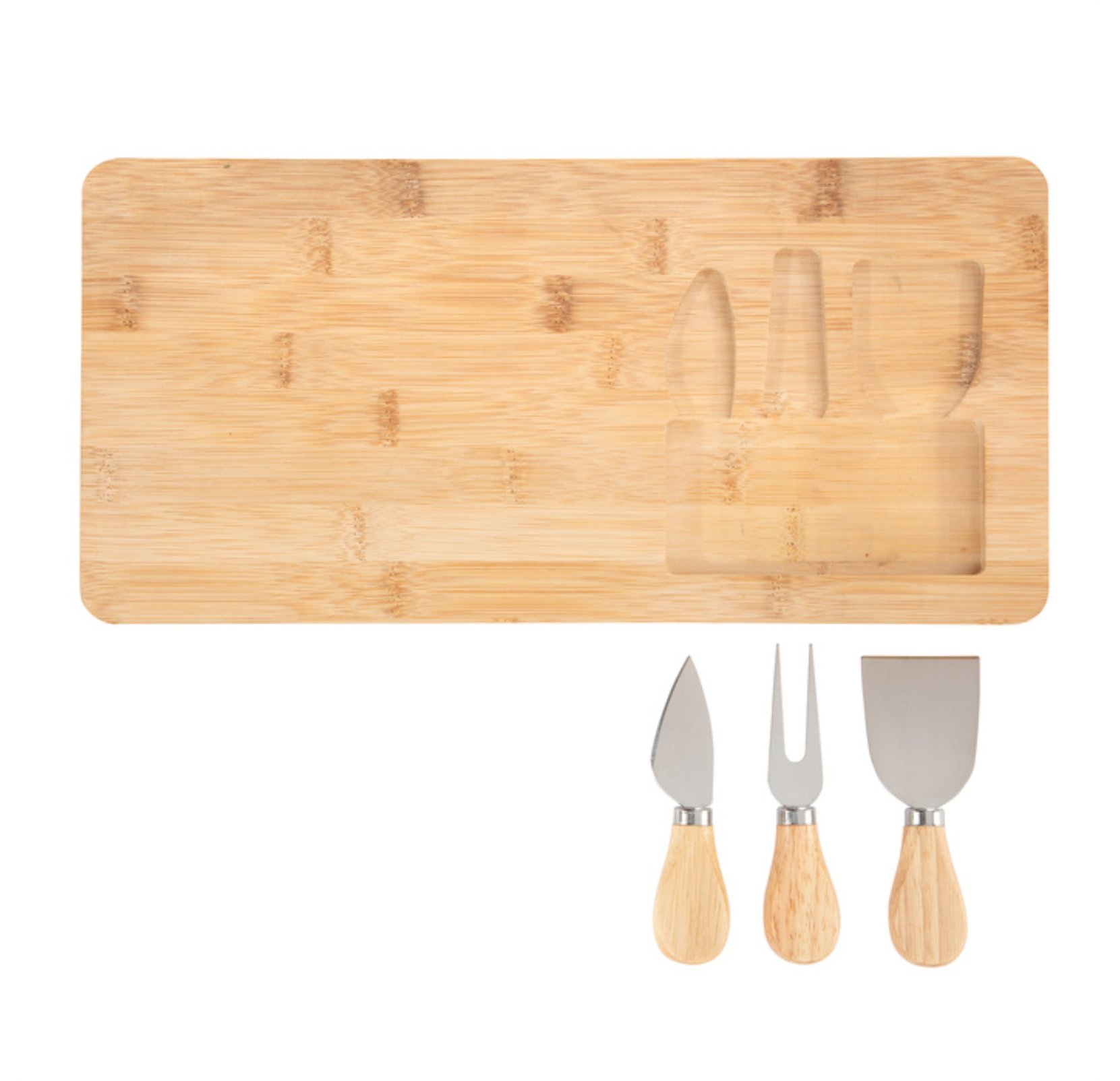 Incluye utensilios de acero inoxidable con mango de madera que permiten cortar y servir quesos con facilidad, brindando una experiencia cómoda y elegante en cada uso. Su diseño permite mantener los utensilios organizados sin ocupar espacio adicional.