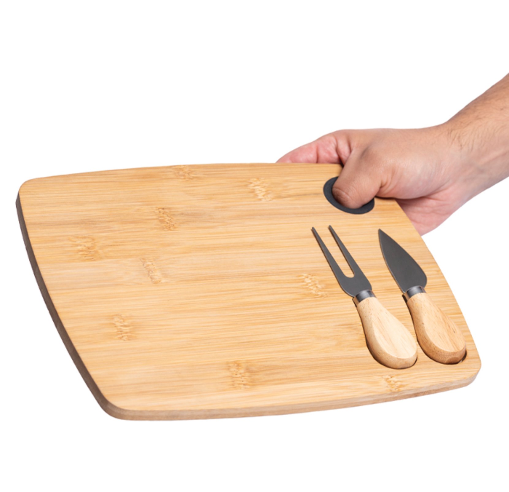 Tabla de Bambú para Quesos Cheddar con Utensilios