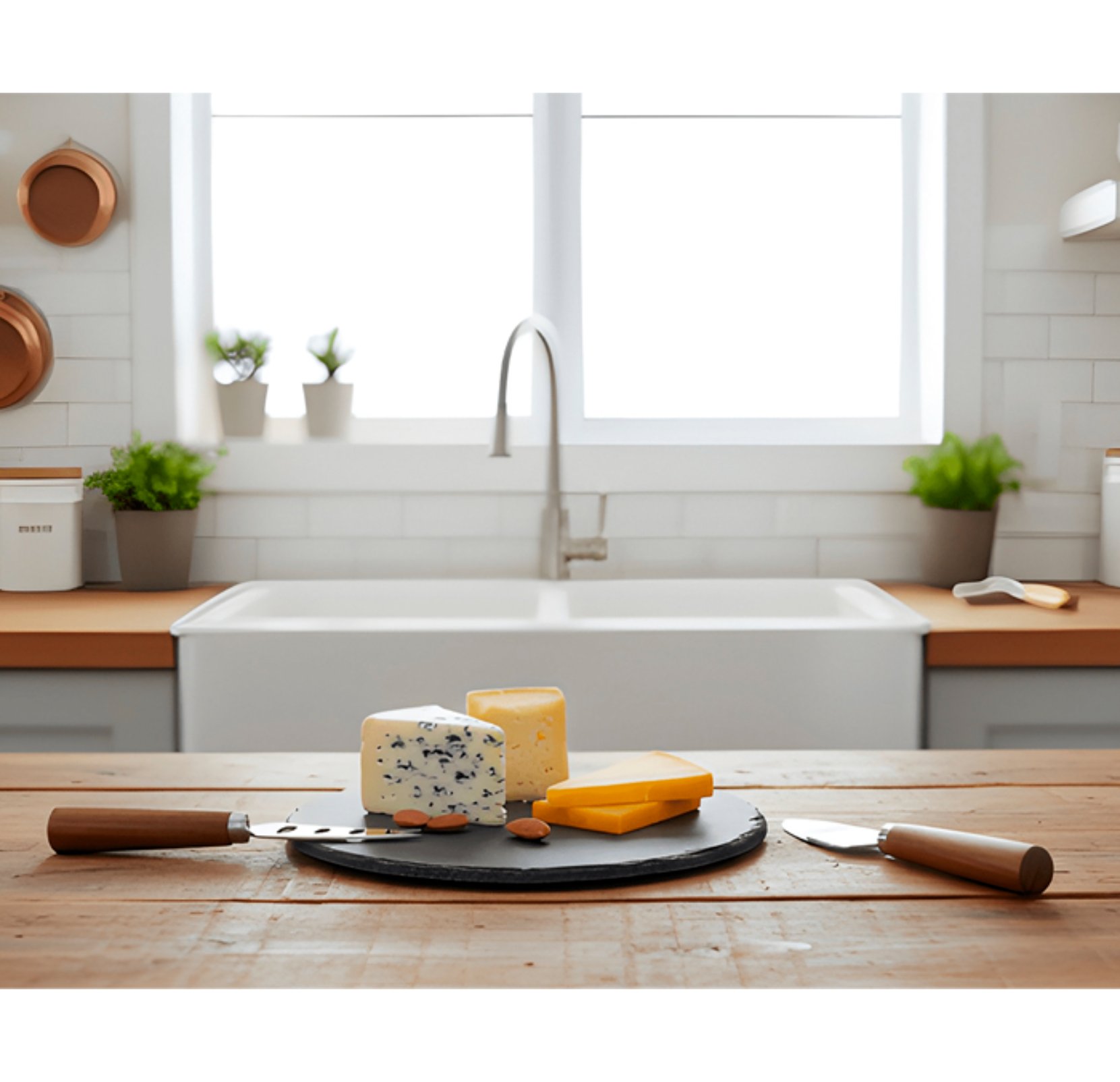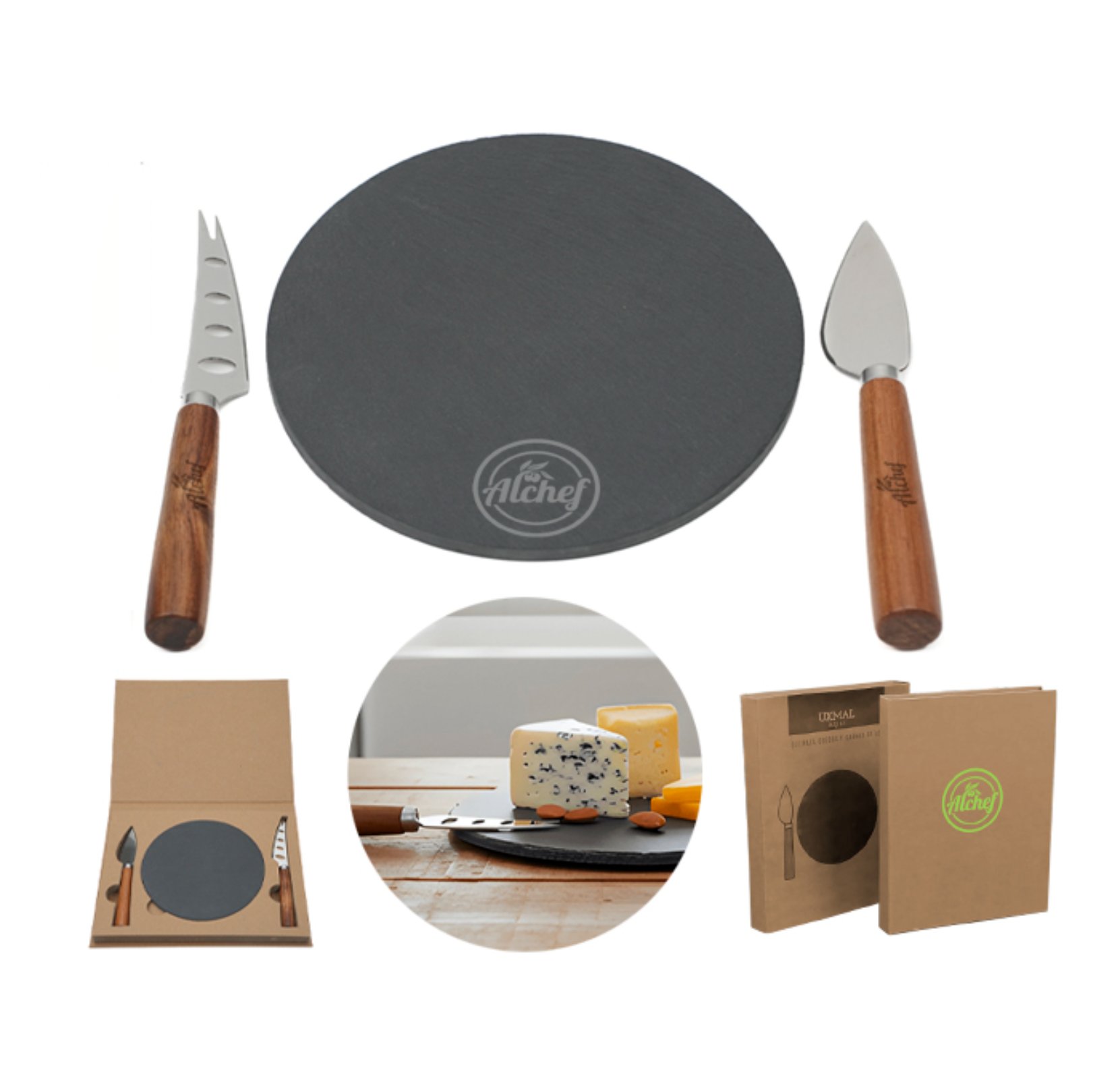 El set para quesos es una opción sofisticada y funcional para presentar alimentos de forma elegante en reuniones, eventos o en el hogar. Su base de piedra natural proporciona una superficie resistente y estable, ideal para servir quesos, carnes frías y botanas, además de mantener una temperatura adecuada por más tiempo.