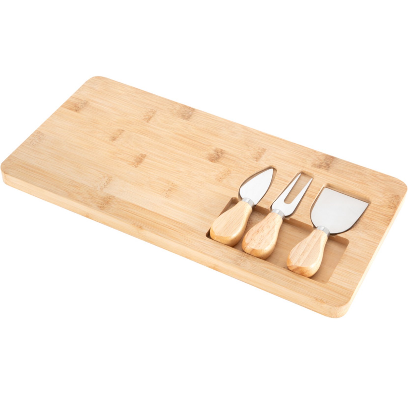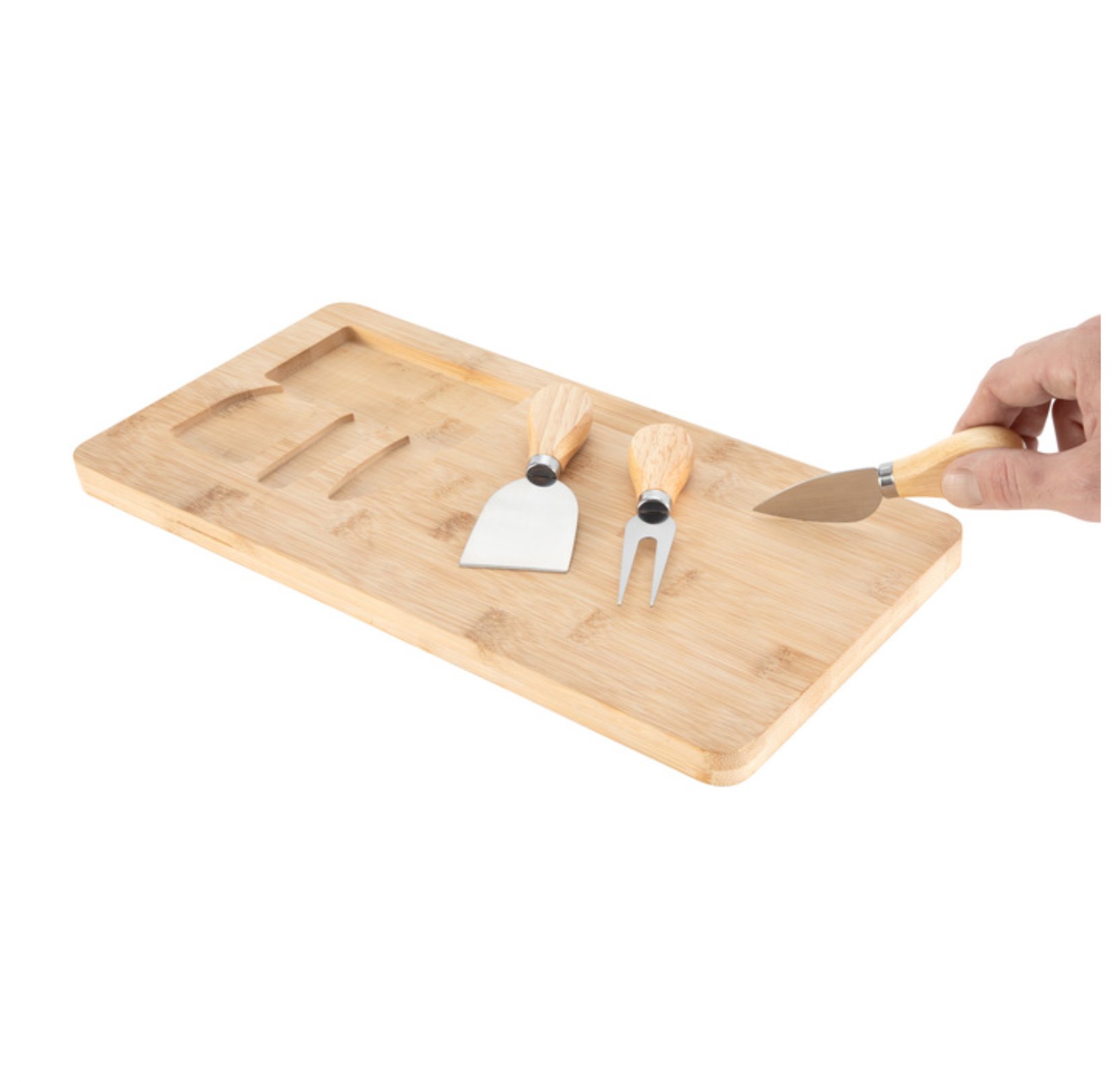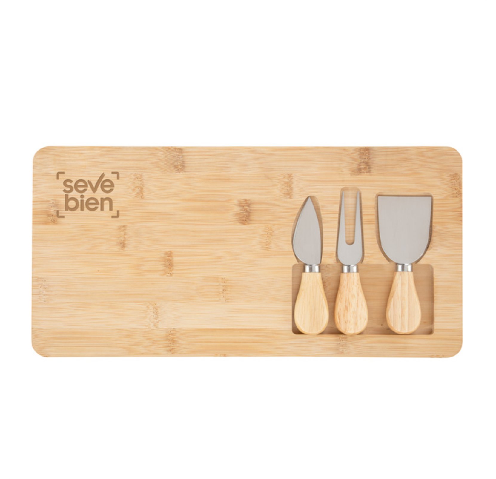 Incluye utensilios de acero inoxidable con mango de madera que permiten cortar y servir quesos con facilidad, brindando una experiencia cómoda y elegante en cada uso. Su diseño permite mantener los utensilios organizados sin ocupar espacio adicional.