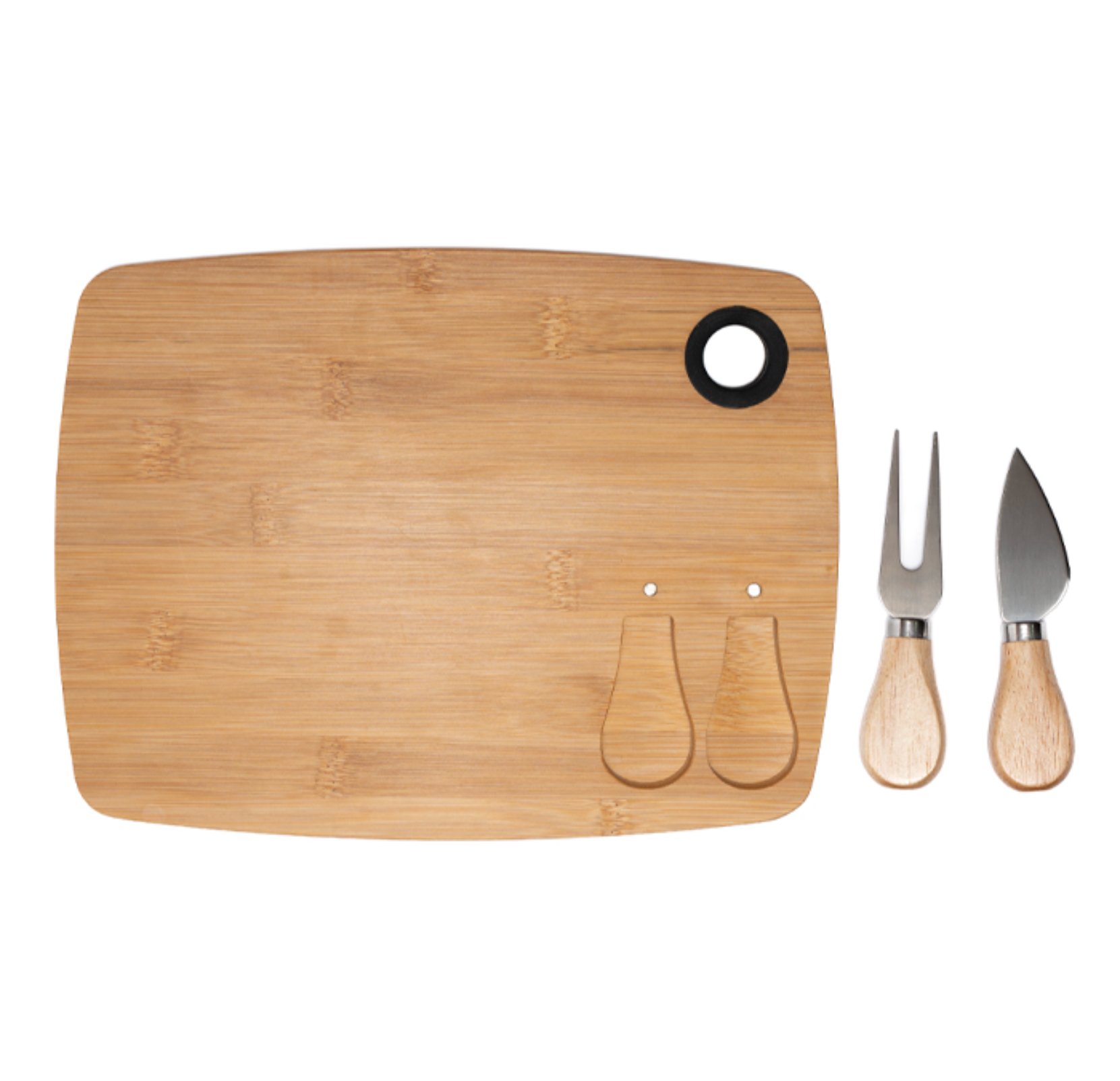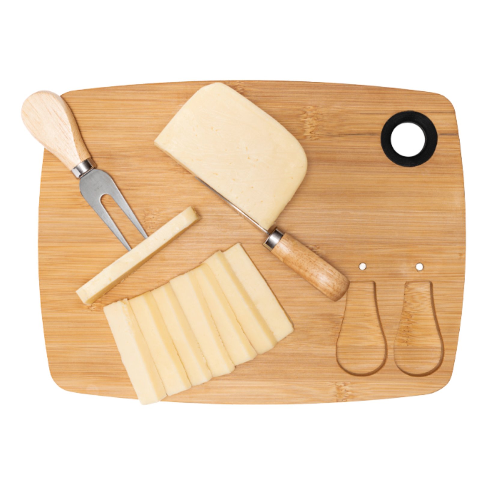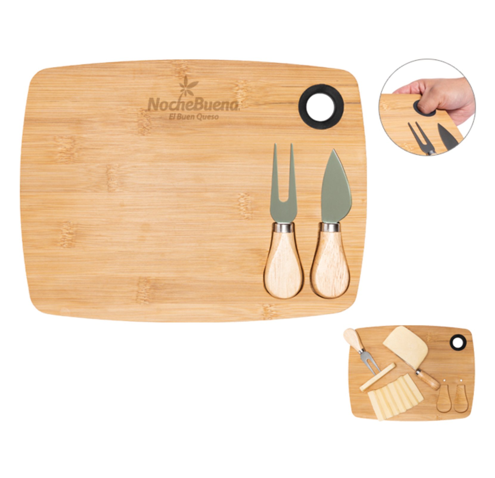 Tabla de Bambú para Quesos Cheddar con Utensilios