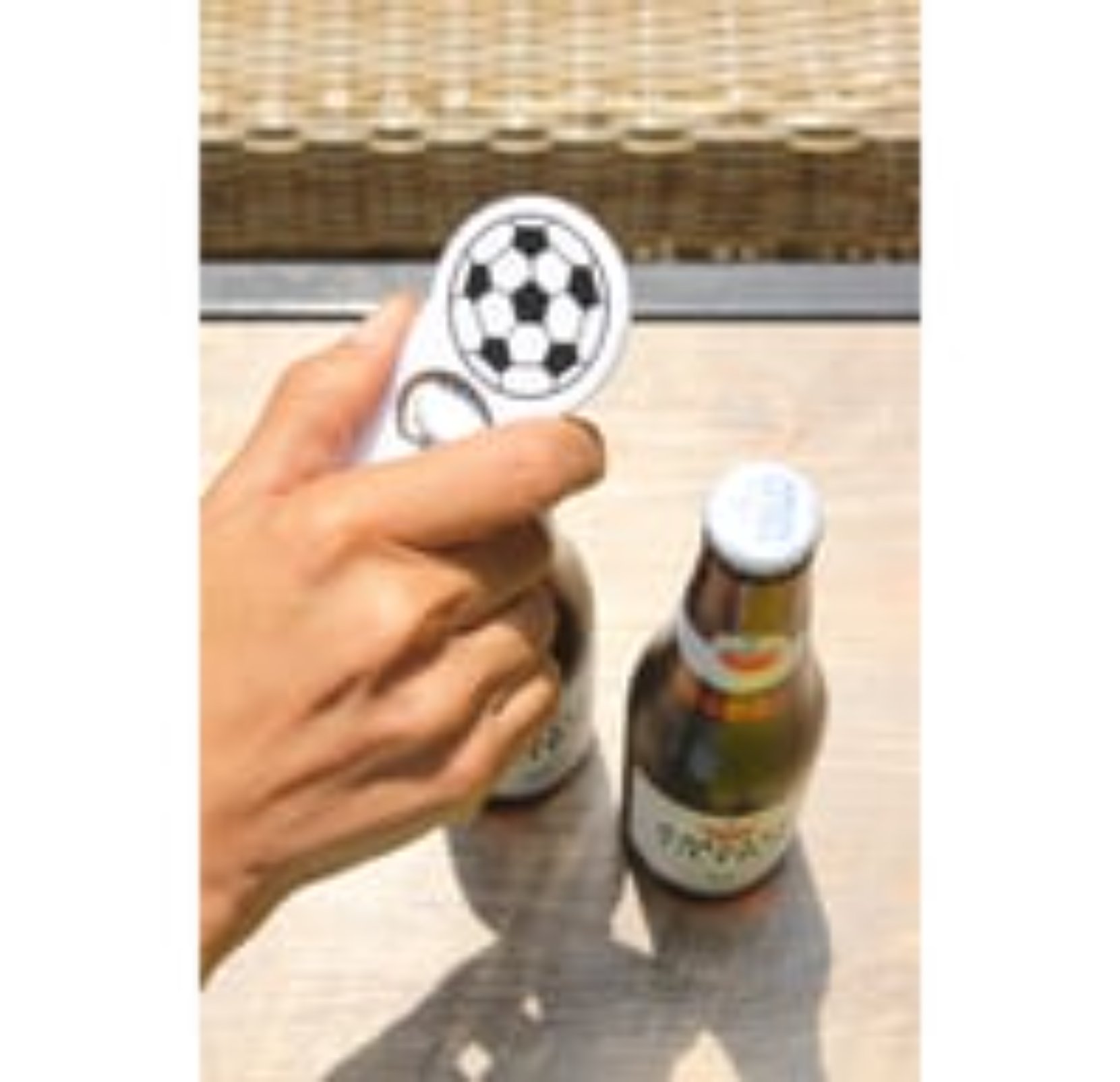 Su diseño deportivo lo hace atractivo y diferente, ideal para reuniones, eventos o uso cotidiano. Además, cuenta con un imán integrado que permite colocarlo en superficies metálicas como refrigeradores, manteniéndolo siempre al alcance.