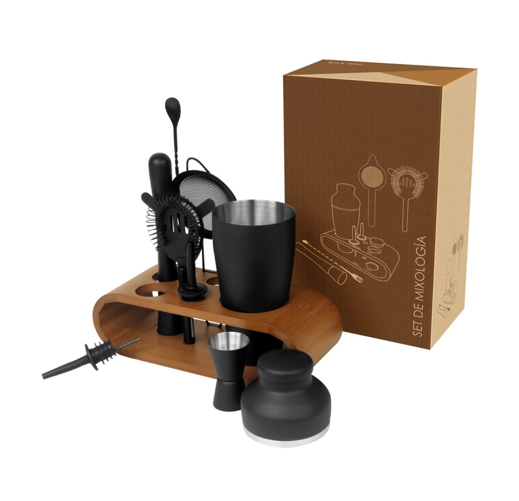- Incluye accesorios de mixología