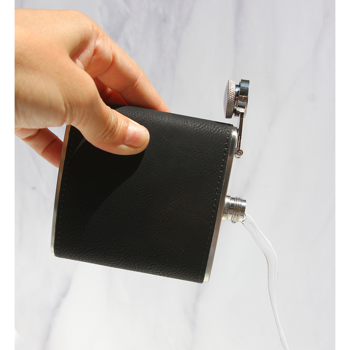 La licorera Romaza destaca por su diseño compacto, elegante y altamente funcional, ideal para quienes buscan transportar bebidas de manera discreta y segura. Fabricada en acero inoxidable con cubierta de curpiel, ofrece una excelente resistencia y un acabado sofisticado que se adapta a cualquier ocasión.