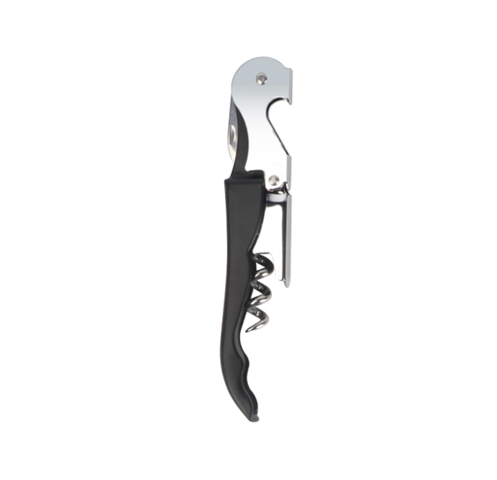 Sacacorchos con destapador y navaja de acero inoxidable. Presentación: Caja individual de kraft.