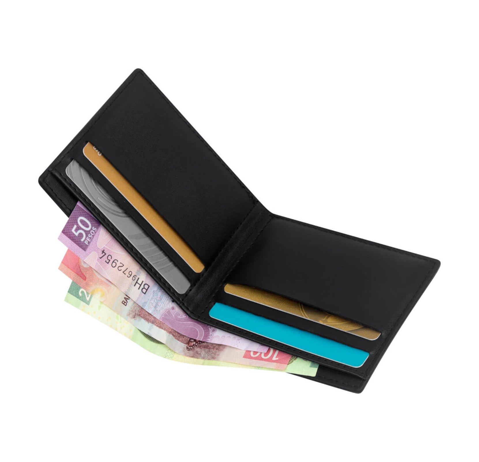 Cuenta con múltiples compartimentos interiores que permiten organizar tarjetas, billetes e identificaciones de forma eficiente, manteniendo todo en orden y al alcance. Su formato compacto facilita llevarla cómodamente en el bolsillo sin sacrificar capacidad.