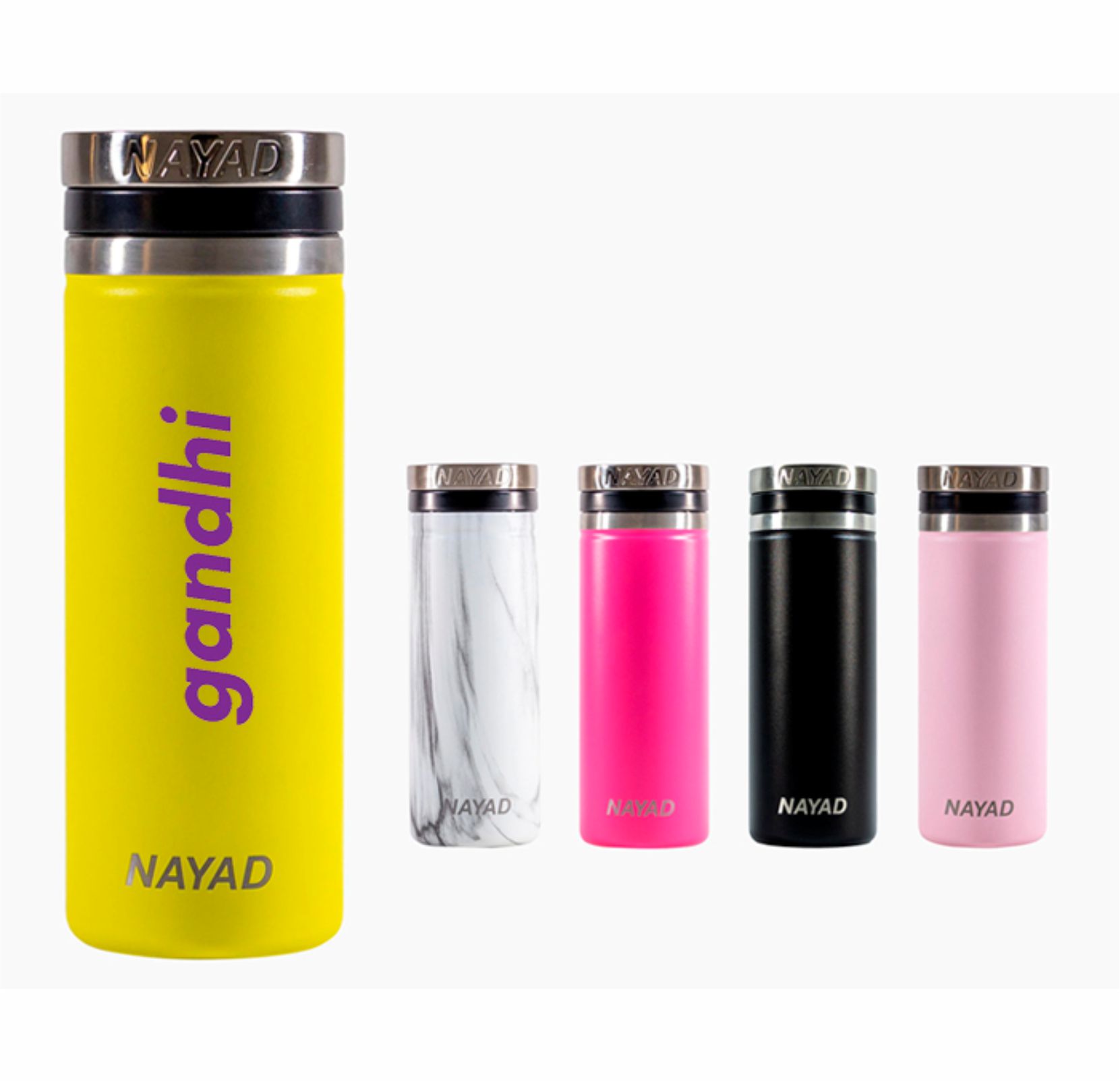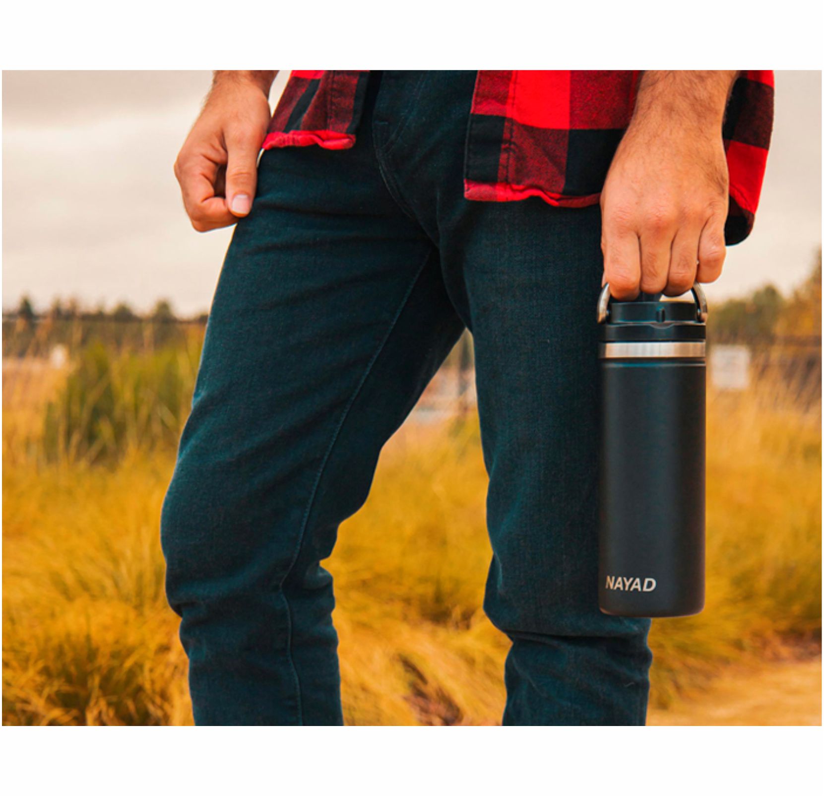 Termo de doble pared marca NAYAD de acero inoxidable 304, insulado al alto vacío, cuenta con capa interior de cobre que permite mantener las bebidas frías por 20 horas y calientes por 10 horas, libre de BPA. Su tapa de rosca a prueba de fugas, cuenta con anillo de transporte duradero de acero inoxidable. CAP. 531 ml. (18 Oz.) Presentación: Caja de color.