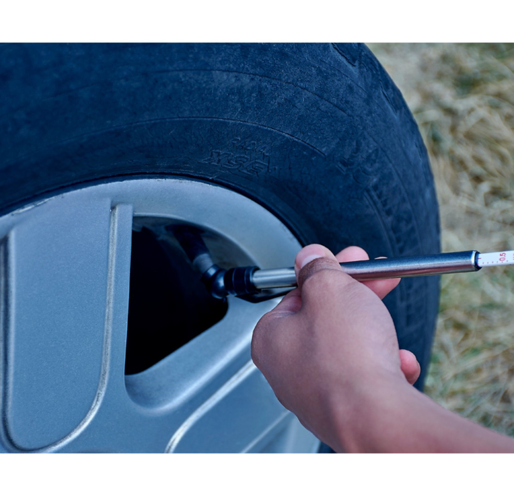 Material: Pasacorriente: PVC - Aluminio / Linterna: ABS / Medidor de presión: ABS - Metal / Impermeable: Plástico / Guantes: Poliéster / Bolsa: PVC / Estuche: Poliéster 600 D                    Medida: 27 x 26 x 8.5 cm