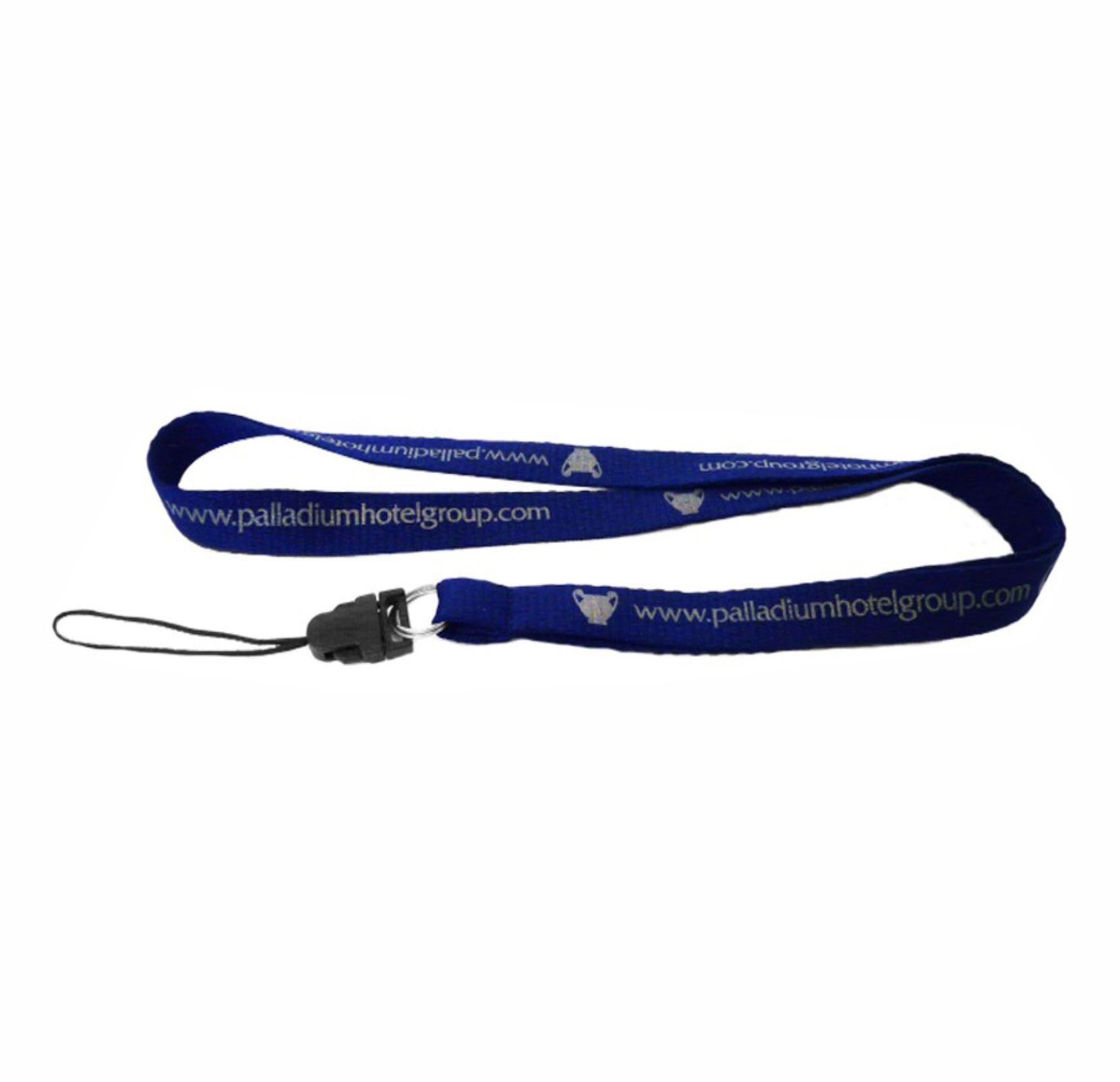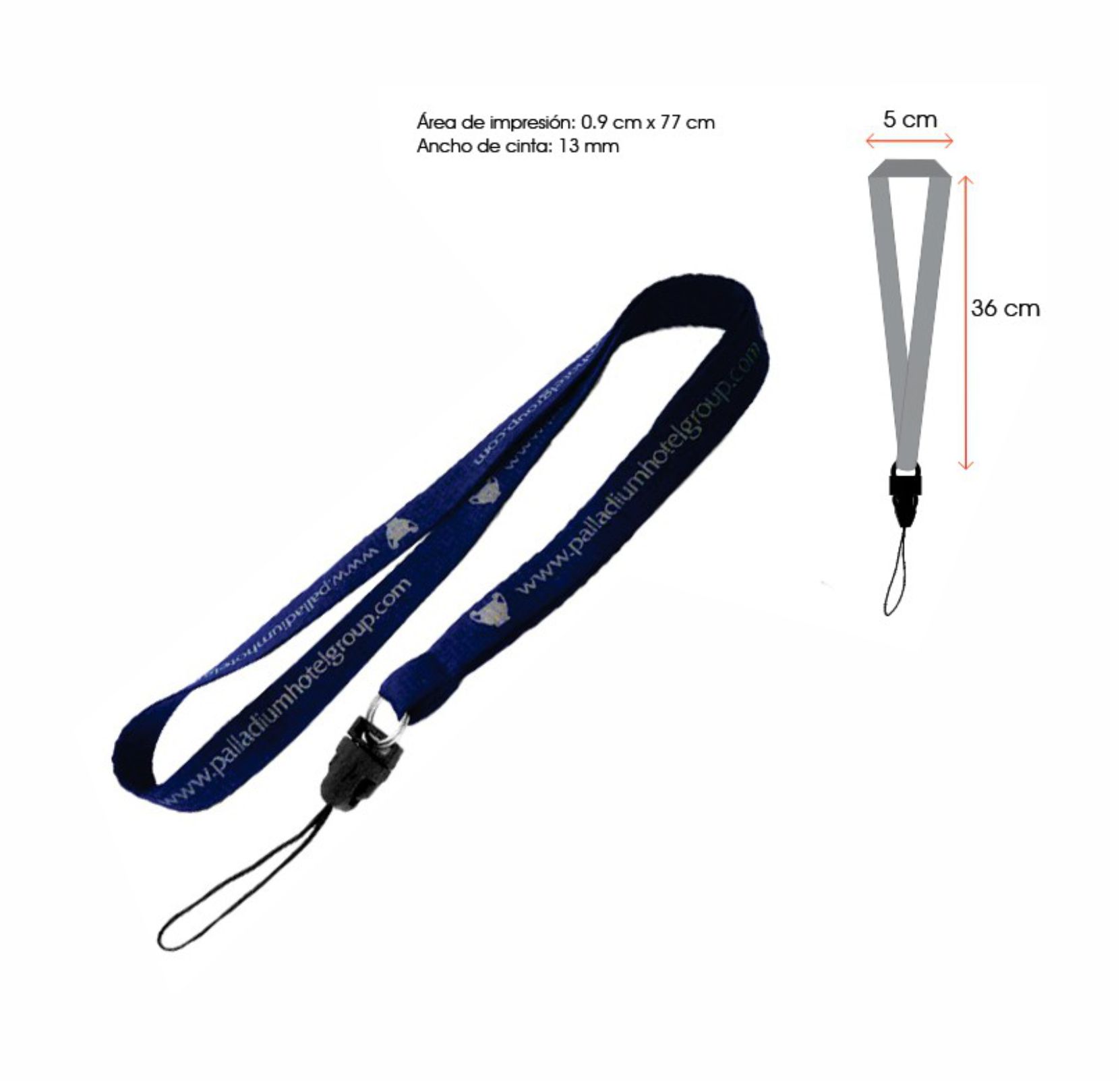 Portagafete en cinta tradicional de 13 mm x 85 cm con impresión en serigrafía. Terminado en broche porta USB , arillo mediano y costura.