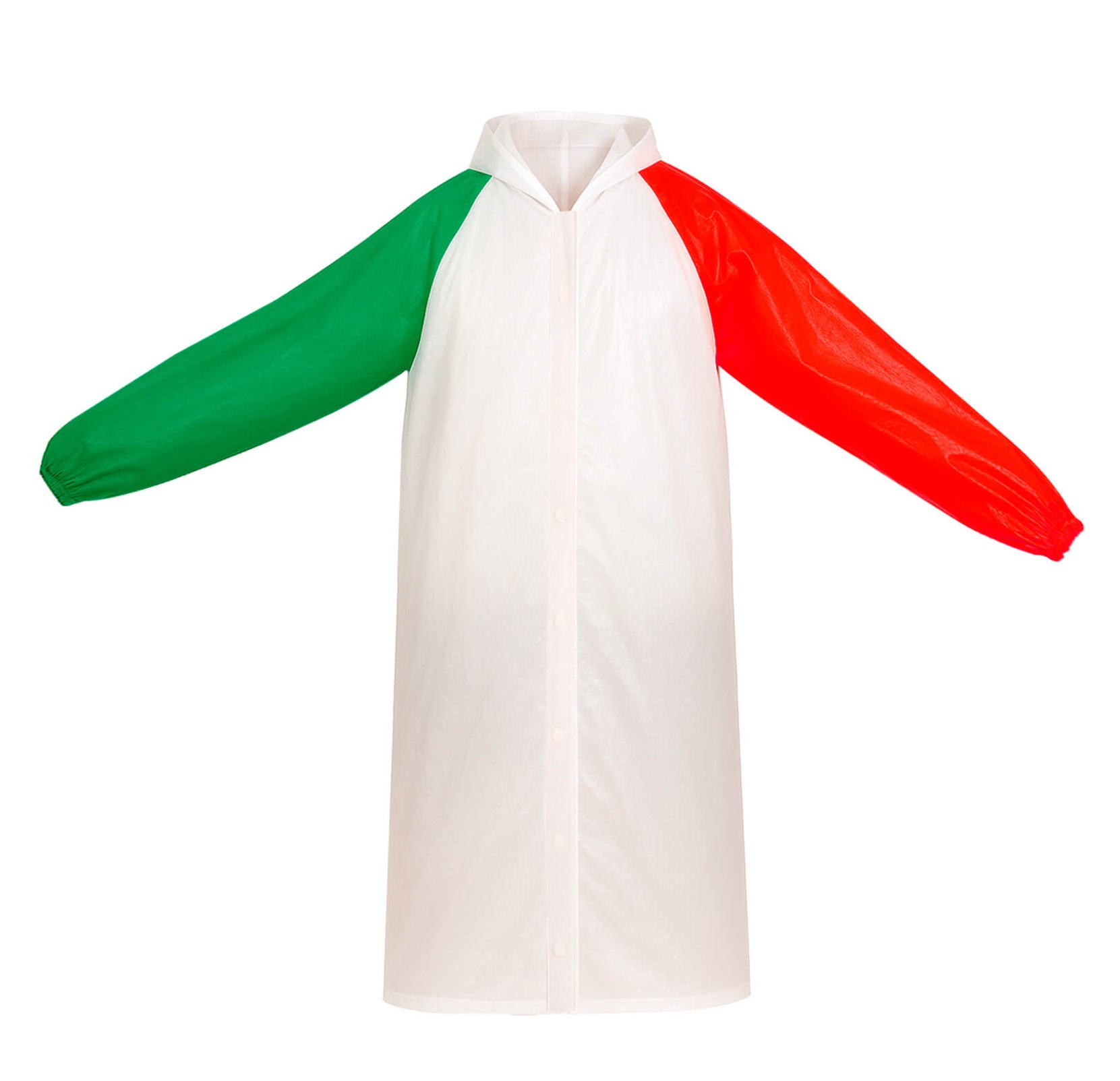Impermeable tricolor con capucha botones y mangas con resorte.