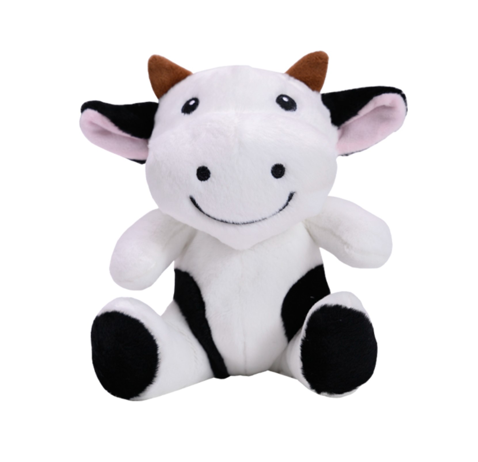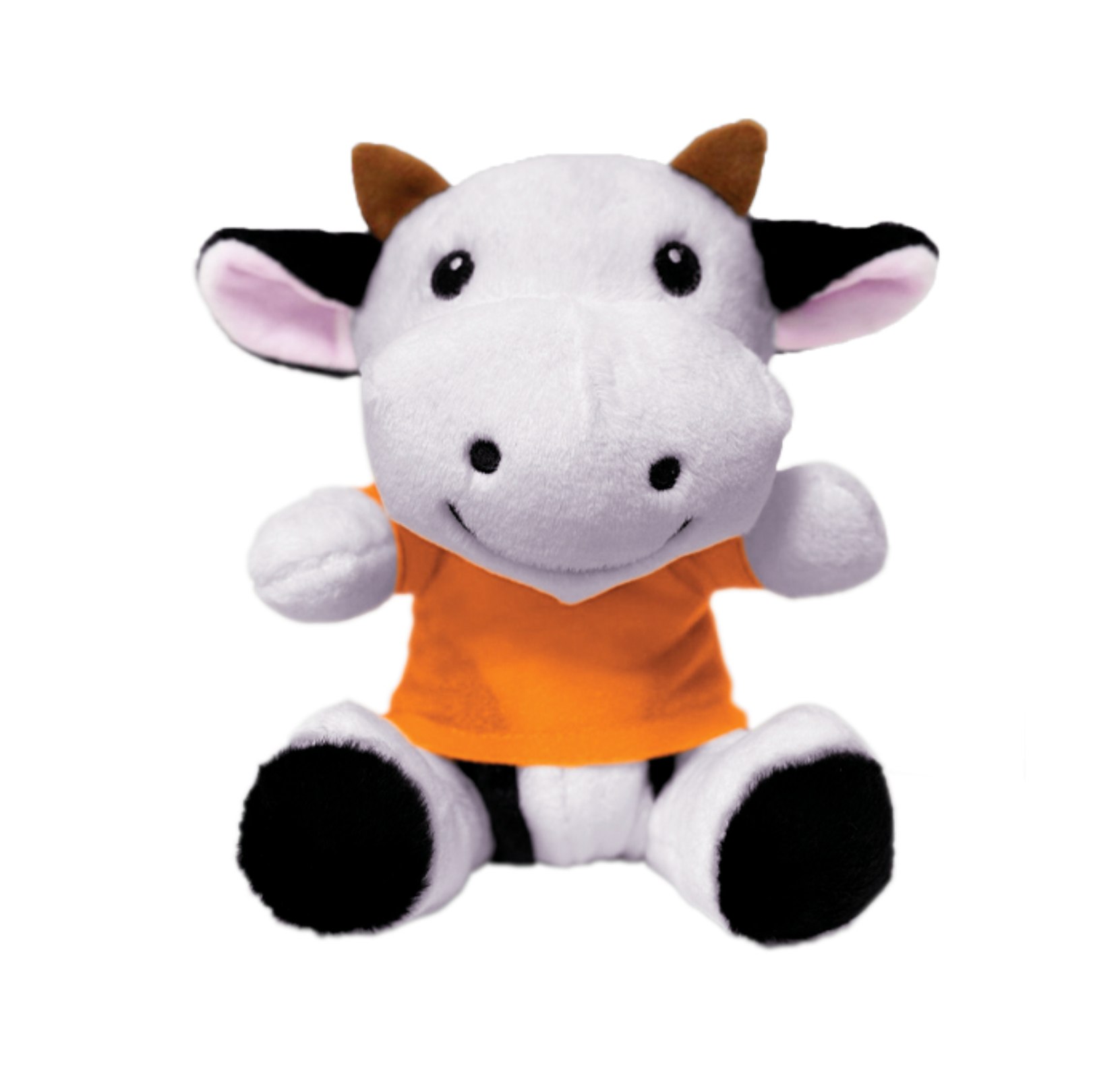 Muñeco de peluche en forma de vaca. Cuenta con playera a color para impresión del logotipo. (Playera se vende por separado).