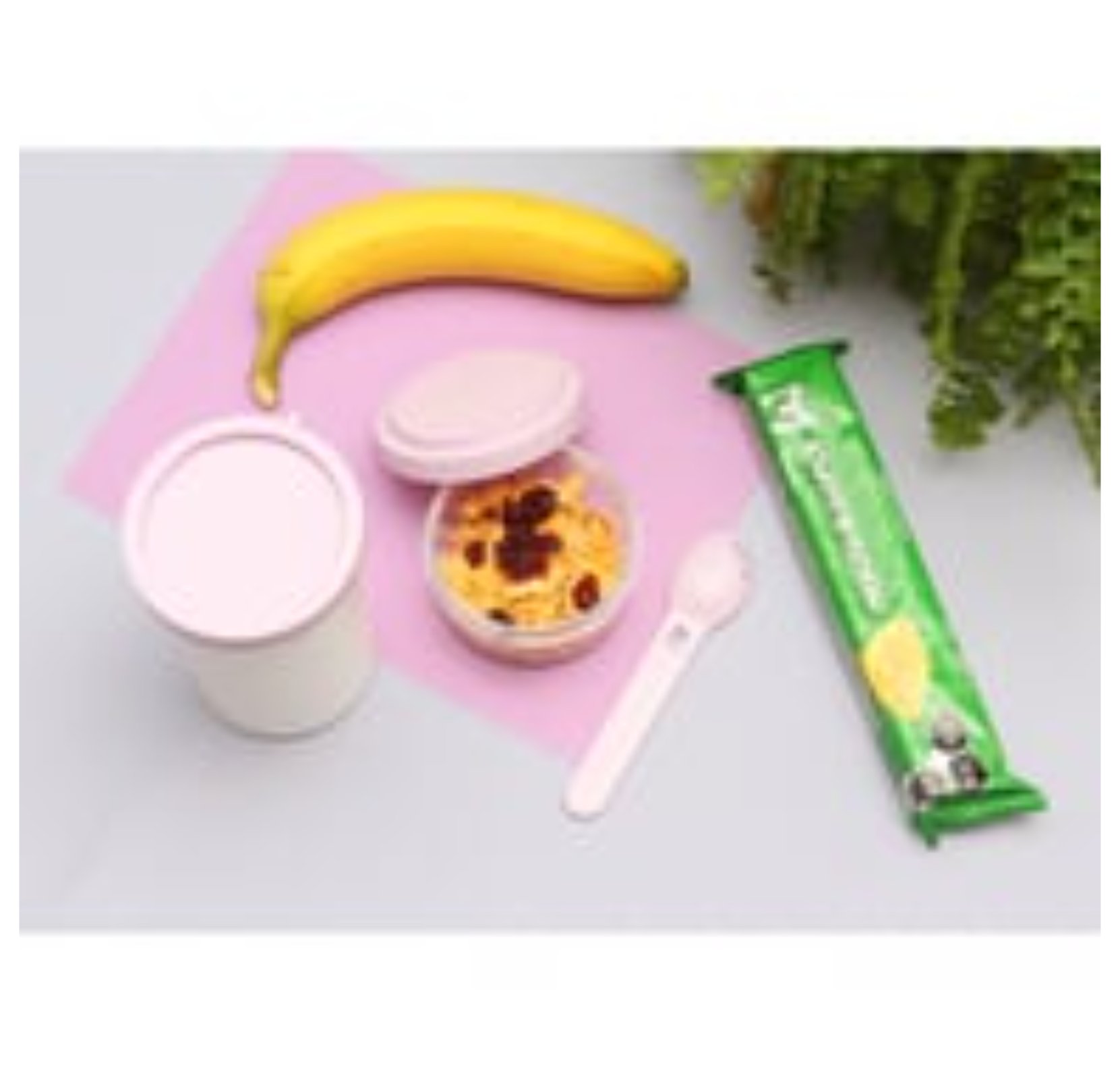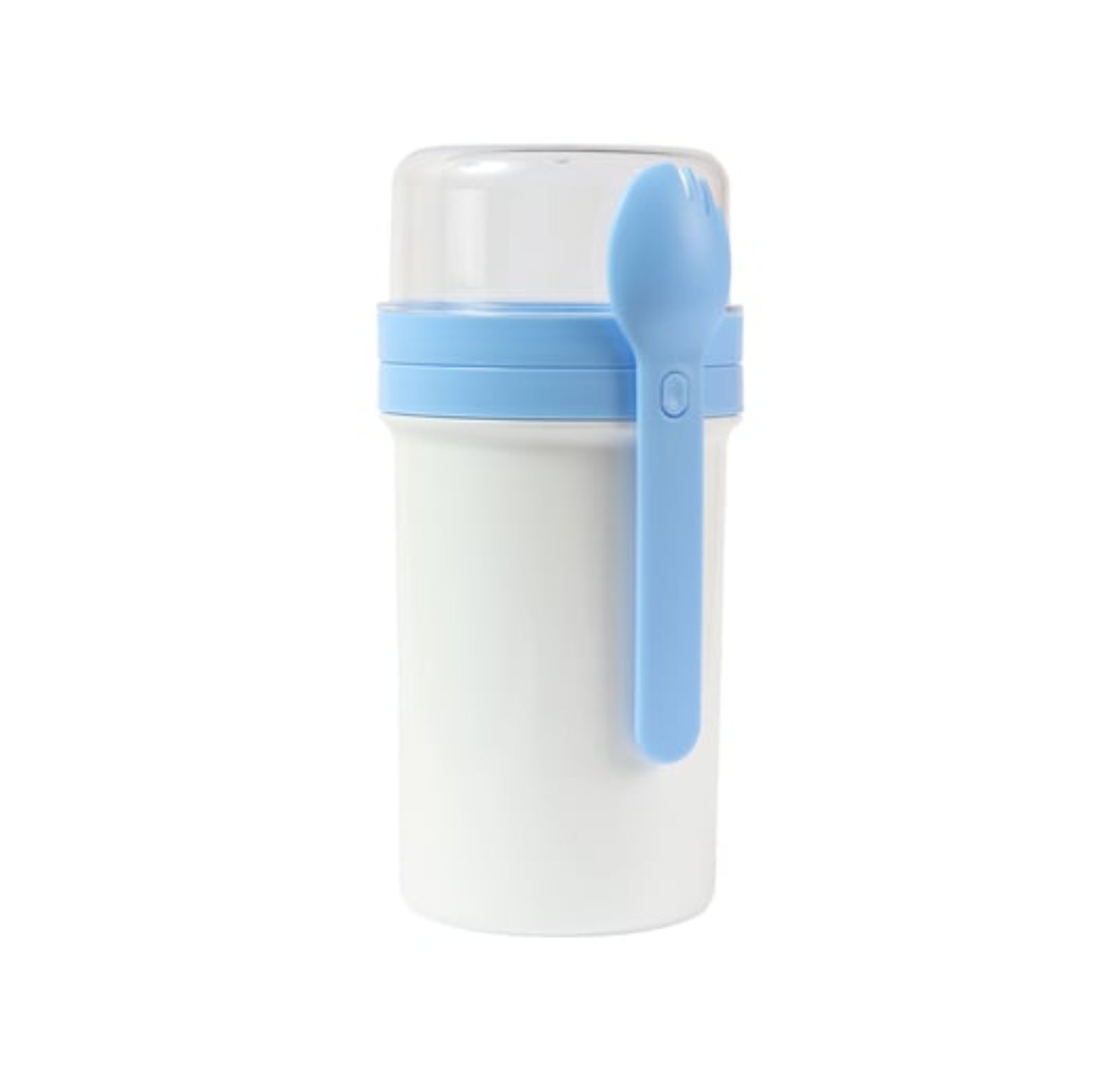Incluye una cuchara integrada que facilita su uso sin necesidad de accesorios adicionales, lo que lo convierte en una opción práctica para llevar a la oficina, escuela o viajes.
