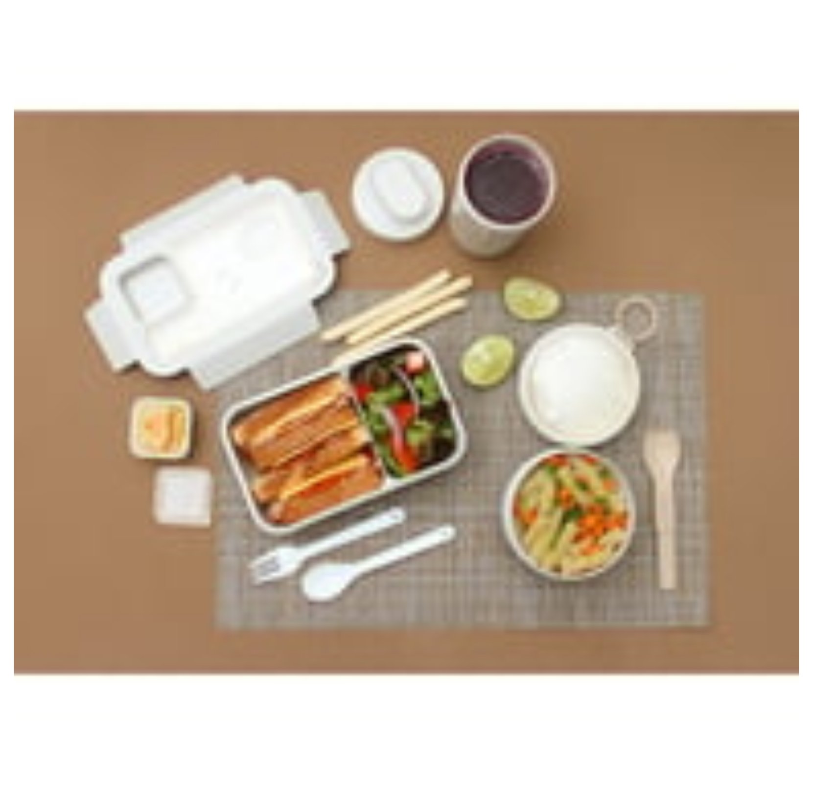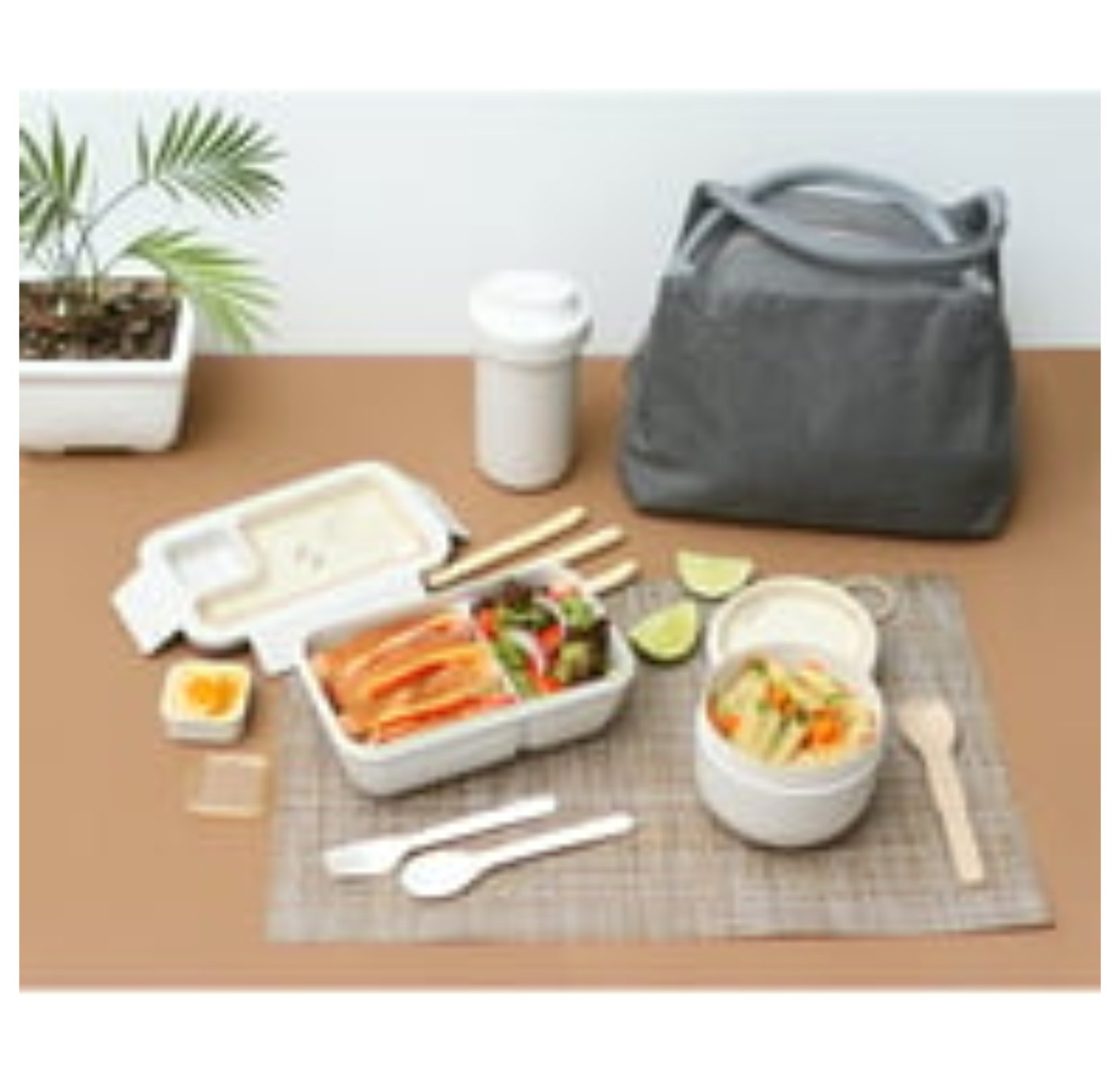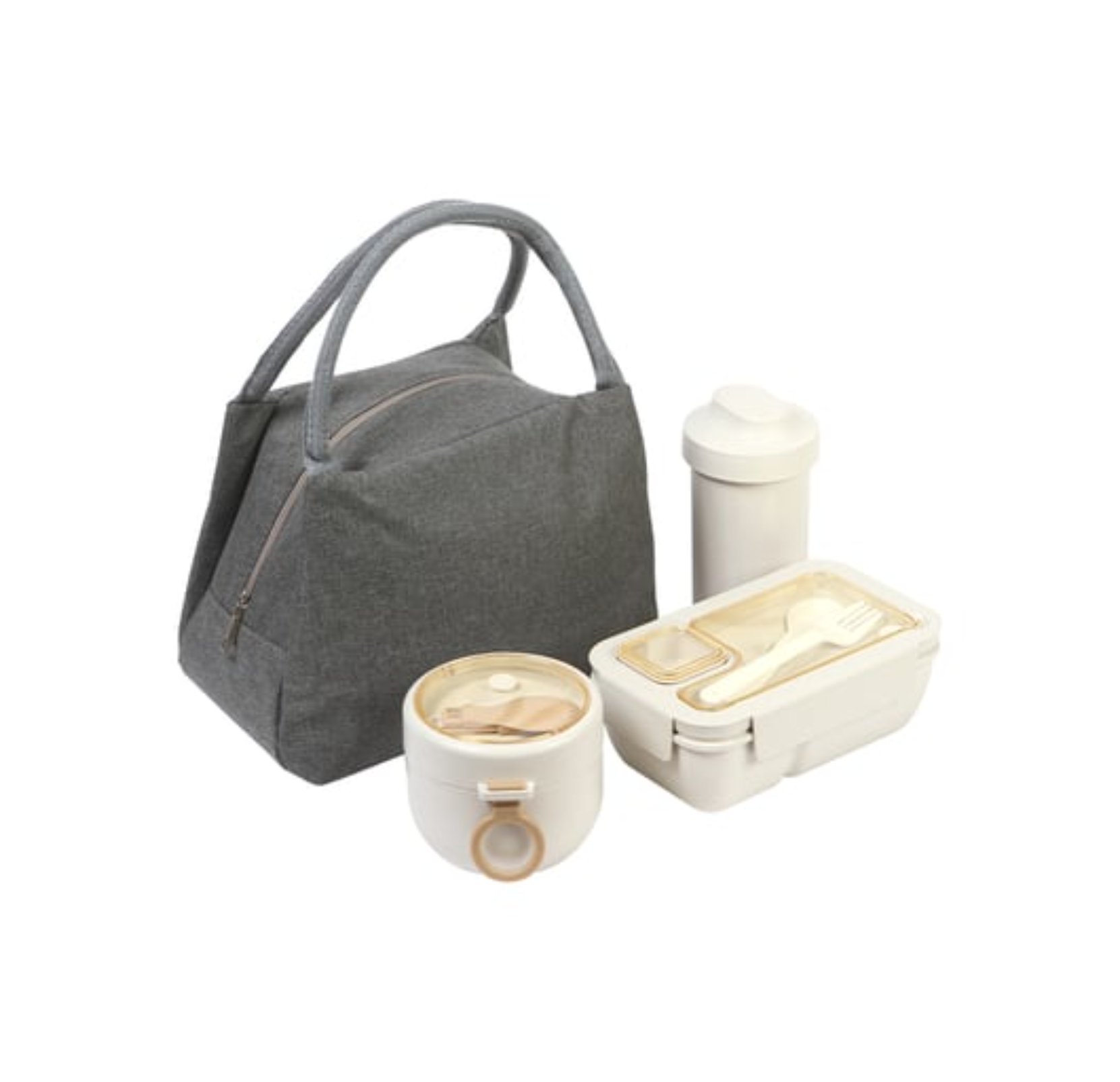 El set incluye recipientes de diferentes tamaños, un vaso y cubiertos reutilizables, lo que la convierte en una opción práctica para quienes buscan comodidad y organización en su alimentación diaria.